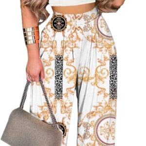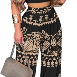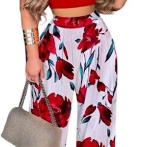 - ❣ DESIGN: TOP – Stretchy soft comfortable slim fit, the back is a scheming U-shaped design that can show your beautiful back. BOTTOM – Wide leg pant feature elastic high waist, full-length pants with 2 side pockets and pleated palazzo pants design. Wide pants leg will not let you feel tight or uncomfortable.