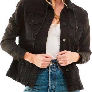 Amazing Ladies’ Denim Jacket with Fleece Hoodie – Presents for Women – Fashion Women Clothing – Medium Washed, L