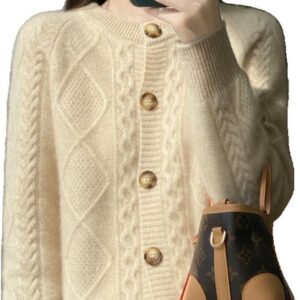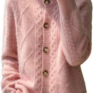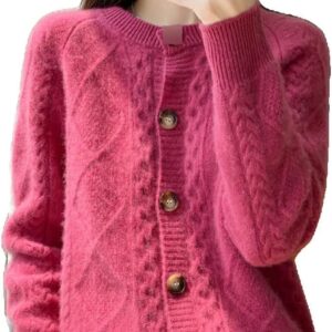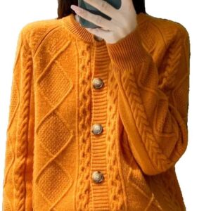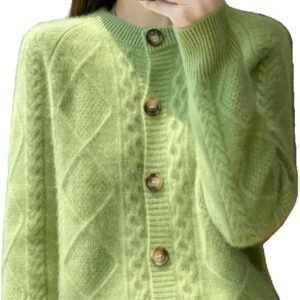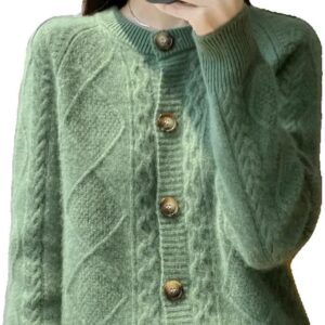 Autumn Winter Women’ Clothing 100% Pure Neck Knitted Cardigan Twisted Flower Long Sleeve Tops Warm Shirt