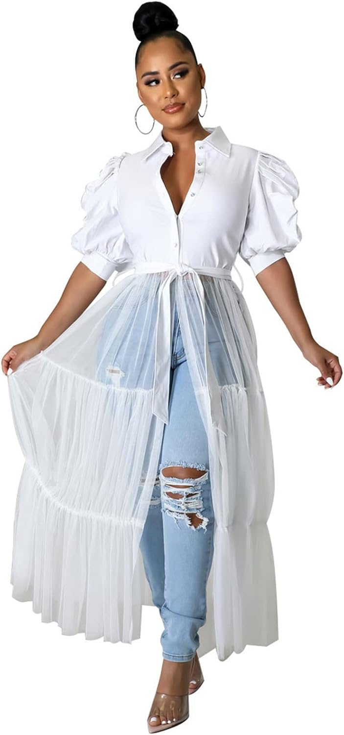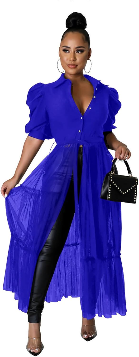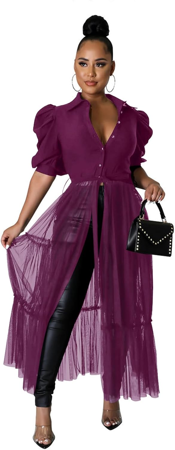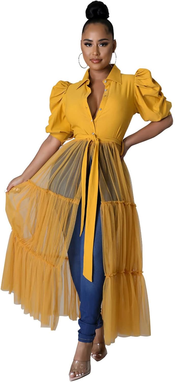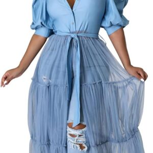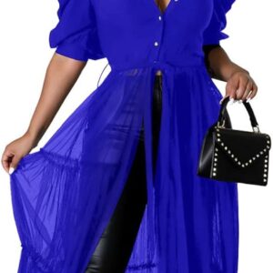 Ekaliy Women Sexy Short Sleeve Bodycon High Low Asymmetrical Ruffle Tunics Blouse Shirt Top Dress