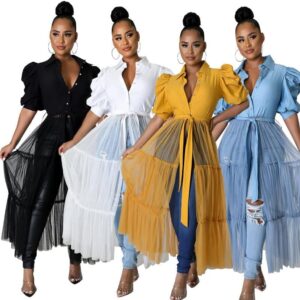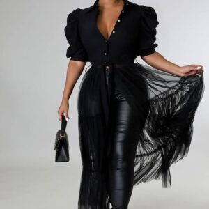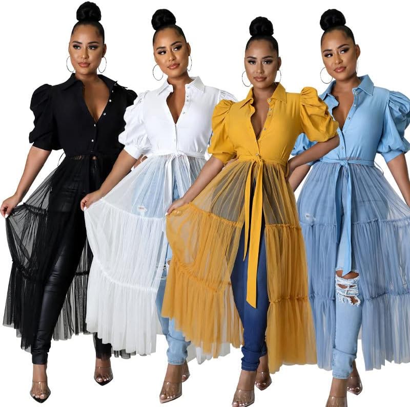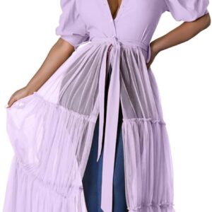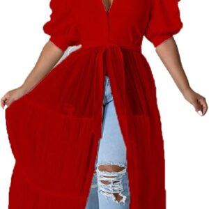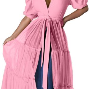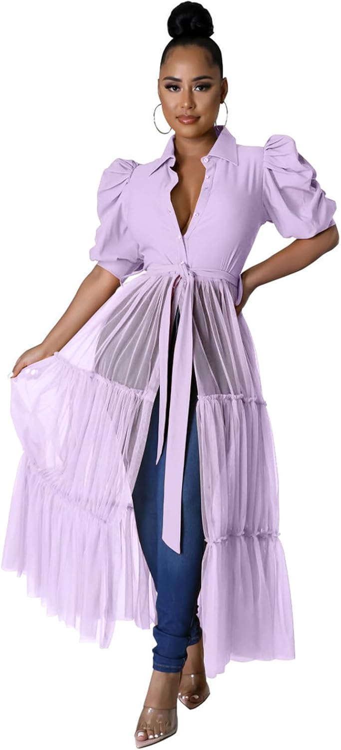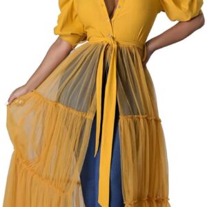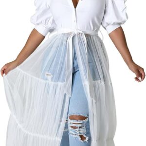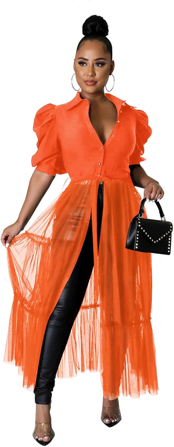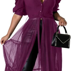 Ekaliy Women Sexy Short Sleeve Bodycon High Low Asymmetrical Ruffle Tunics Blouse Shirt Top Dress