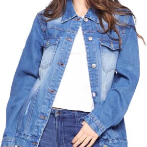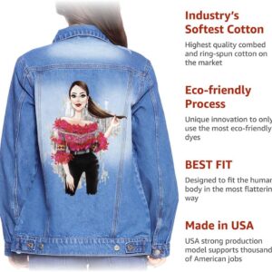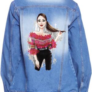 Fashion Illustration Women’s Casual Denim Jacket – Cool Art Clothing – Unique Design Apparel