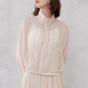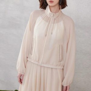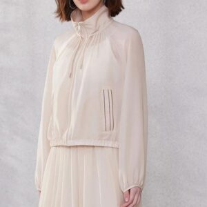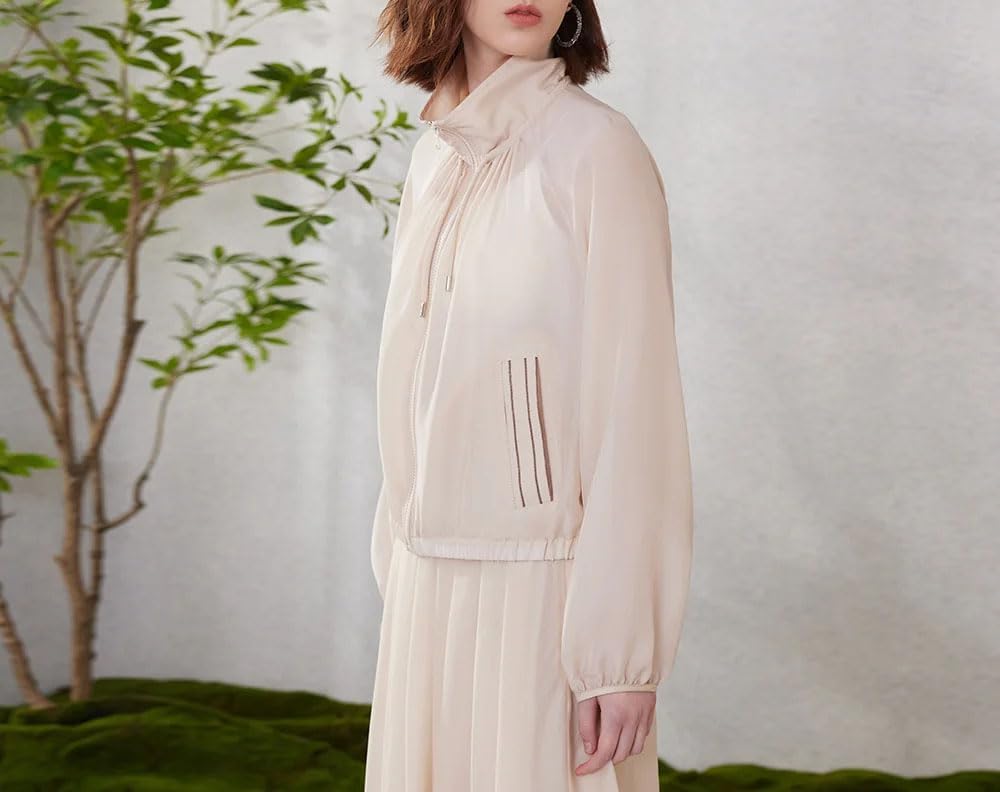 Fashion Women Outwear Acetate Silk Hoodie Zipper Loose Fit Clothing