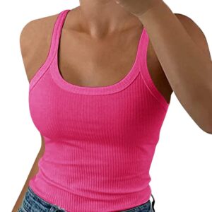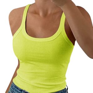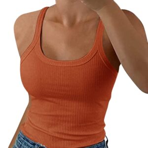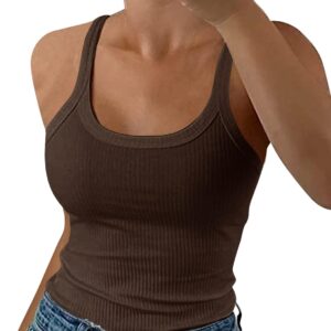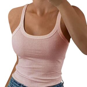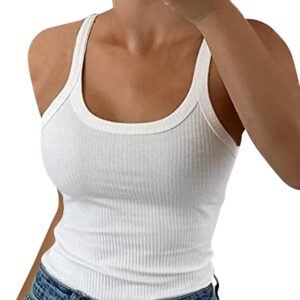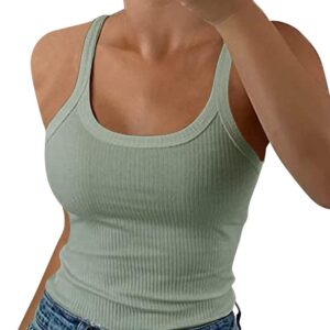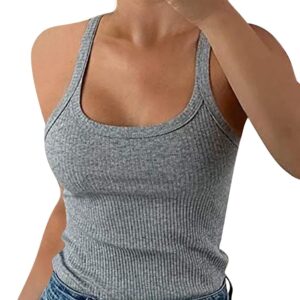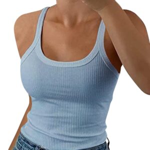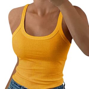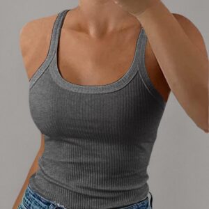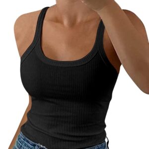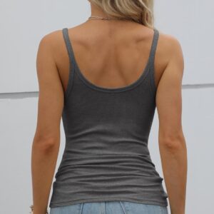 GEMBERA Women Spaghetti Strap Scoop Neck Ribbed Tank Tops Slim Fitted Cotton Camisole Basic Sleeveless Layering Shirts