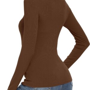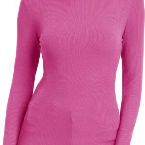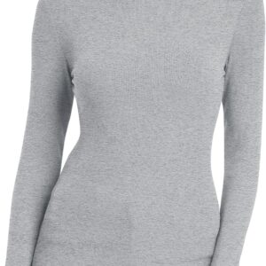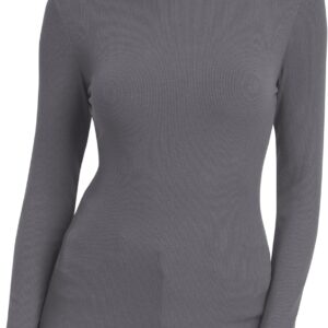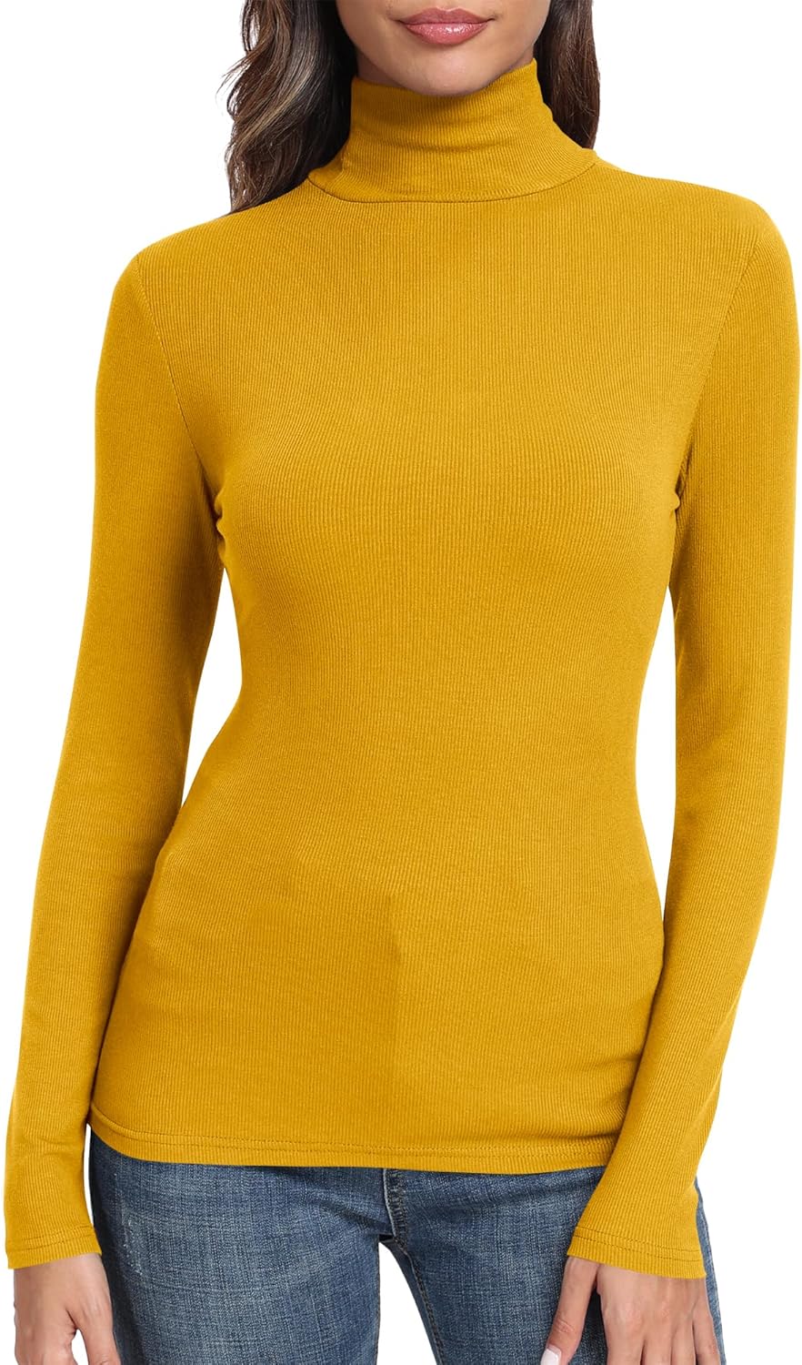 GEMBERA Womens Long Sleeve Mock Turtle Neck Basic Slim Fitted Ribbed Knit Tops Shirts