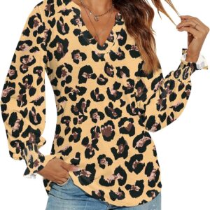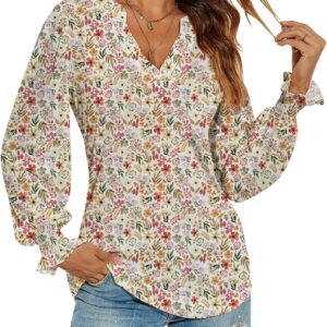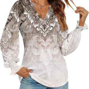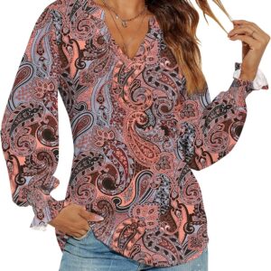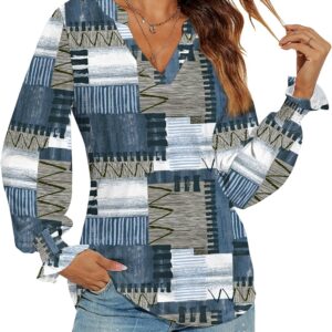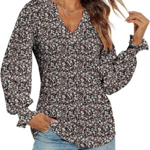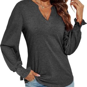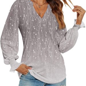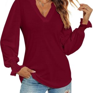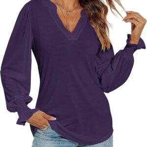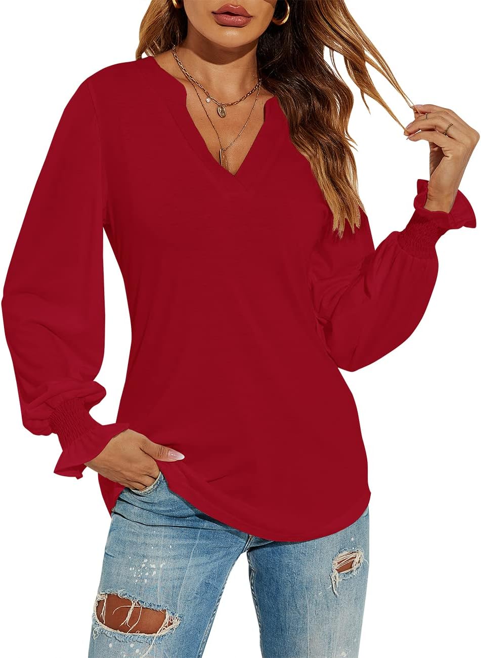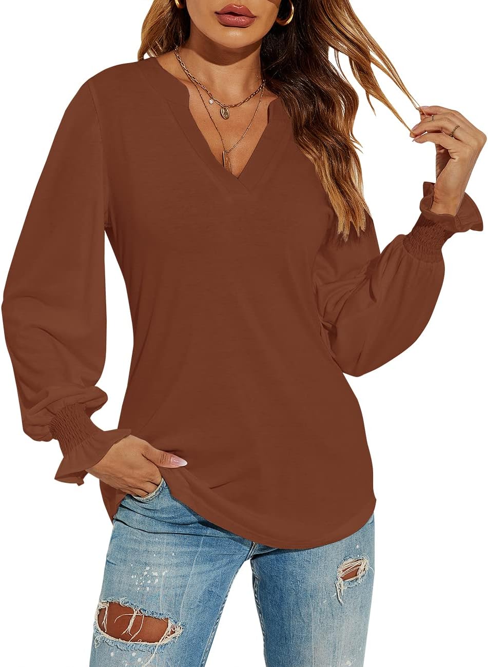 Romanstii Women’s Casual V-Neck T-Shirts Loose Puff Long Sleeve Tops Tunic Blouses