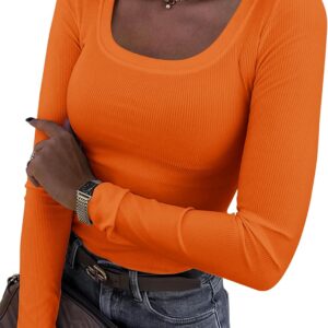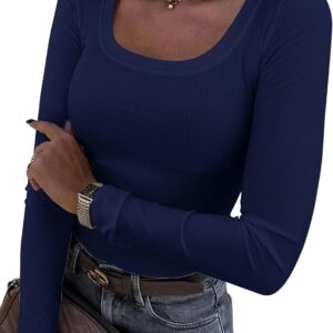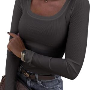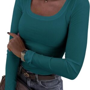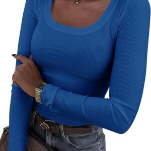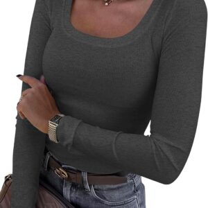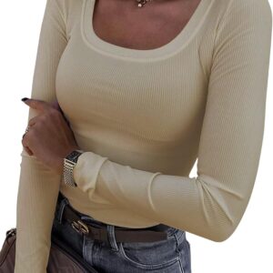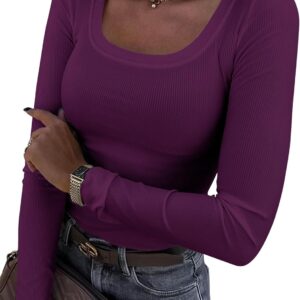 Roselux Womens Long Sleeve Scoop Neck Ribbed Knit Fitted Casual Tops Tee Slim Basic Shirts