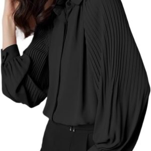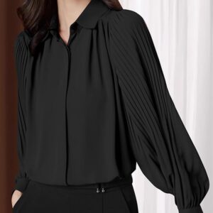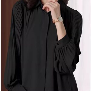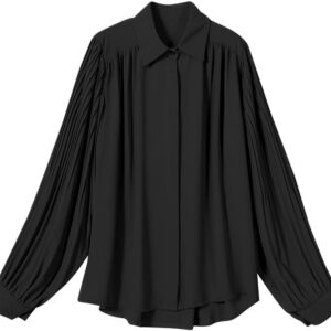 Shirt for Women Spring Clothes Black Chiffon Shirt Pleated Large Size top White Womens
