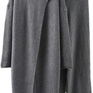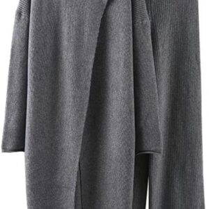 Split Long High Neck Sweaters with Wide Leg Pants 2 Pieces Knitted Thickened Sets Female Clothing Autumn