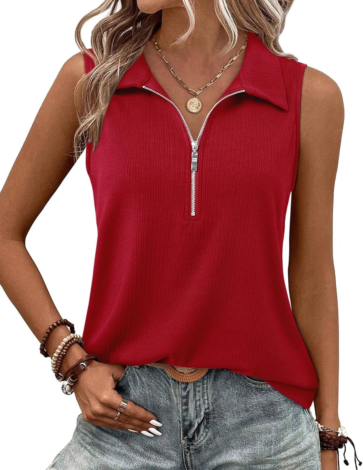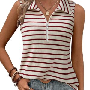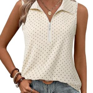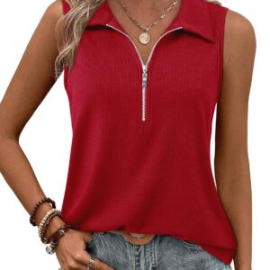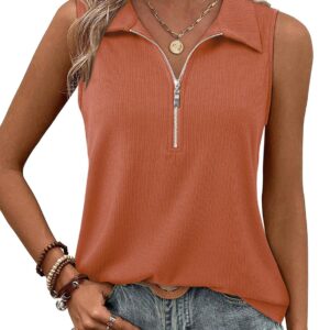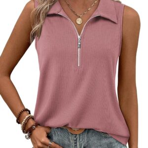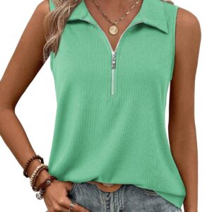 Vivilli Tank Tops for Women Spring Tops Summer Ribbed Collared Polo Shirt Zipper