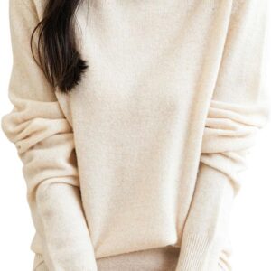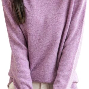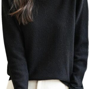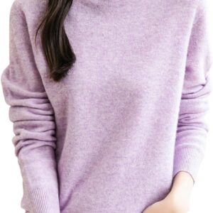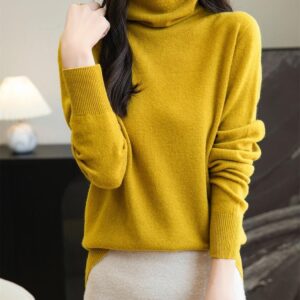 Women’s 100% Merino Wool Sweater Long Sleeve Turtleneck Tops Vintage Knitted Pullover Fashion Clothing