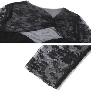 YMGSCC Fashion Sexy Round Neck Hollow T-Shirt Women’s Mesh Top Lace Long Sleeve Shirt Slim Fit Clothing See-Through Shirt