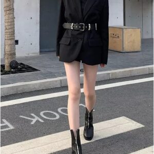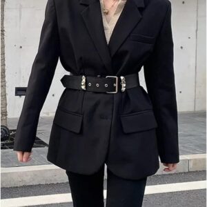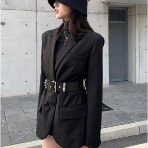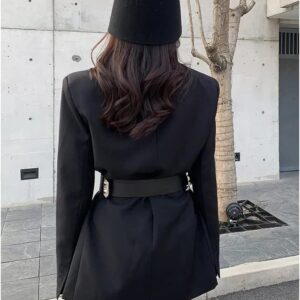 Black Blazers for Women Notched Collar Long Sleeve With Sashes Solid Slim Female Fashion Clothing .