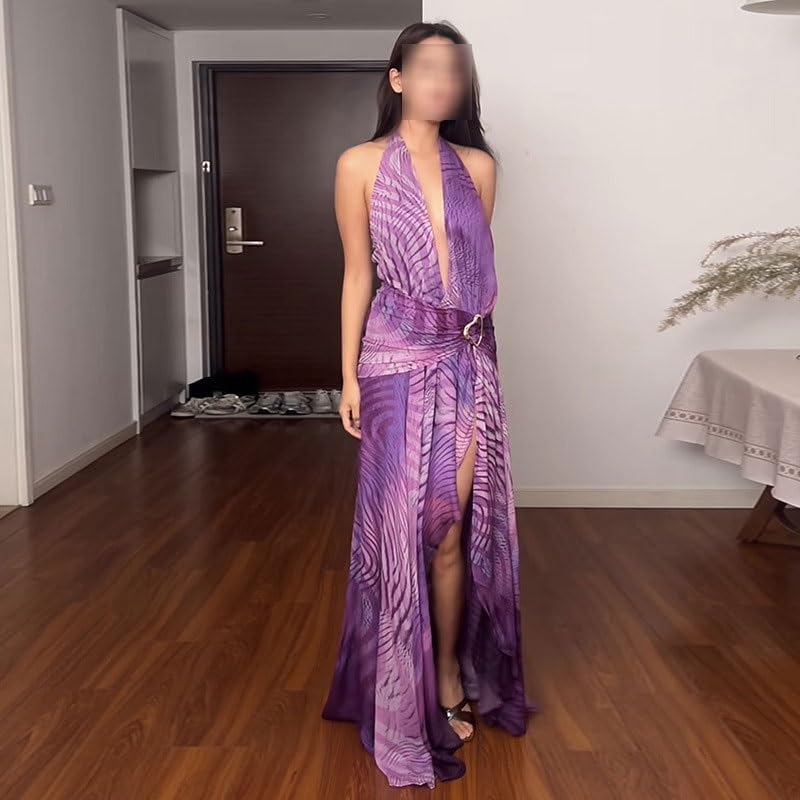 YWMLFZ Women's Clothing Tube Top Dress Fashion Sleeveless Shoulder Gradient Color Dress Long Hanging Neck Slim Fit Long Skirt