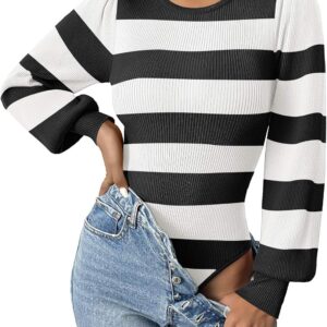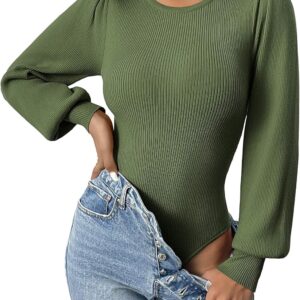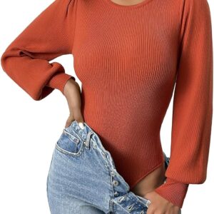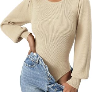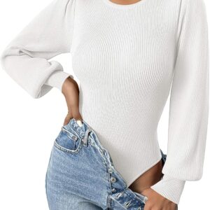 Features—Crewneck/Puff Long Sleeve/Rib Knit/Bodysuit Style