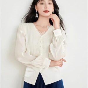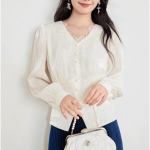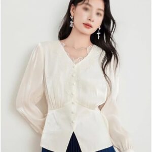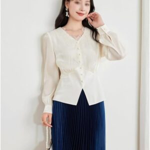 ZYQHMY Chiffon V-Neck Shirt Women’s Tops Small Shirt Women’s Clothing Long Sleeve Women’s Shirt(Beige,M)